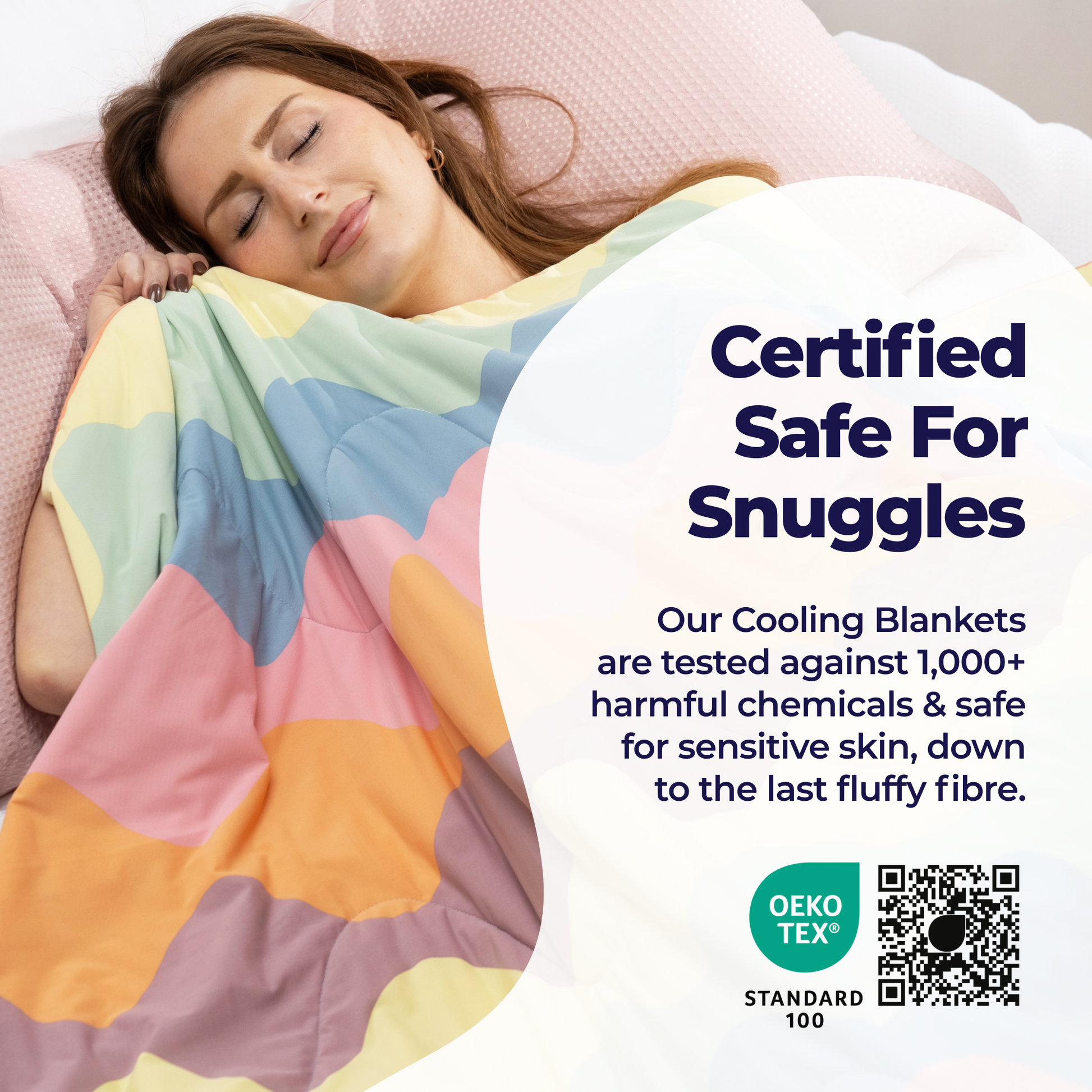 Our Cooling Blanket is made from breathable, moisture-wicking fibers that help release heat and keep you cool. With a Qmax score of 0.32, the fabric feels 2–5°C cooler than your skin, giving you a comfortable night’s rest.